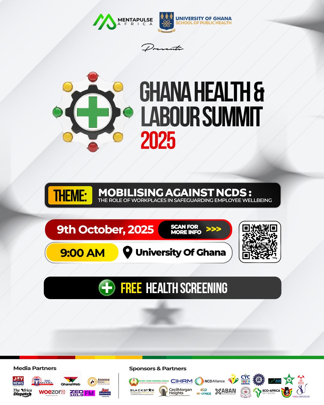 Organised by MentaPulse Africa, Africa’s pioneering employee mental health and wellbeing advocacy organisation, the maiden edition of the Ghana Health & Labour (GHL) Summit, will unite government, employers, trade unions, health agencies, international partners, and the private sector to confront the intersection of workplace culture, employee wellbeing, and the rising burden of non-communicable diseases (NCDs).